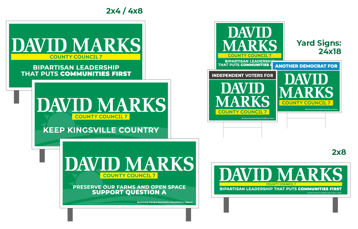 Yard Signs Complete the form below to receive yard signs. Thank you for your support! Name(Required) First Last Phone(Required)Email Address Street Address Address Line 2 City StateAlabamaAlaskaAmerican SamoaArizonaArkansasCaliforniaColoradoConnecticutDelawareDistrict of ColumbiaFloridaGeorgiaGuamHawaiiIdahoIllinoisIndianaIowaKansasKentuckyLouisianaMaineMarylandMassachusettsMichiganMinnesotaMississippiMissouriMontanaNebraskaNevadaNew HampshireNew JerseyNew MexicoNew YorkNorth CarolinaNorth DakotaNorthern Mariana IslandsOhioOklahomaOregonPennsylvaniaPuerto RicoRhode IslandSouth CarolinaSouth DakotaTennesseeTexasUtahU.S. Virgin IslandsVermontVirginiaWashingtonWest VirginiaWisconsinWyomingArmed Forces AmericasArmed Forces EuropeArmed Forces Pacific State ZIP Code Sign Choices(Required)Select which sign you would like to receive. Standard David Marks Sign Democrat for David Marks Sign Independent for David Marks Sign
